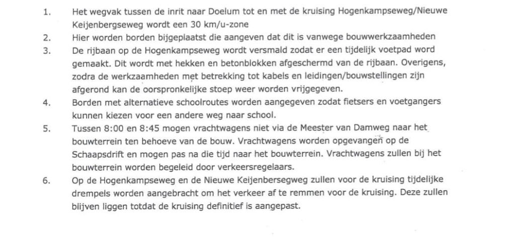 Onze fractie heeft de voorbereide motie niet ingediend omdat het college dus de tijdelijke maatregelen op het laatste moment al toezegde. De maatregelen (zie afbeelding hieronder) zijn naar verwachting ná de carnavalsvakantie gereed. Uiteraard blijven we ook druk uitoefenen op de noodzakelijke structurele verbeteringen aan het kruispunt zelf.